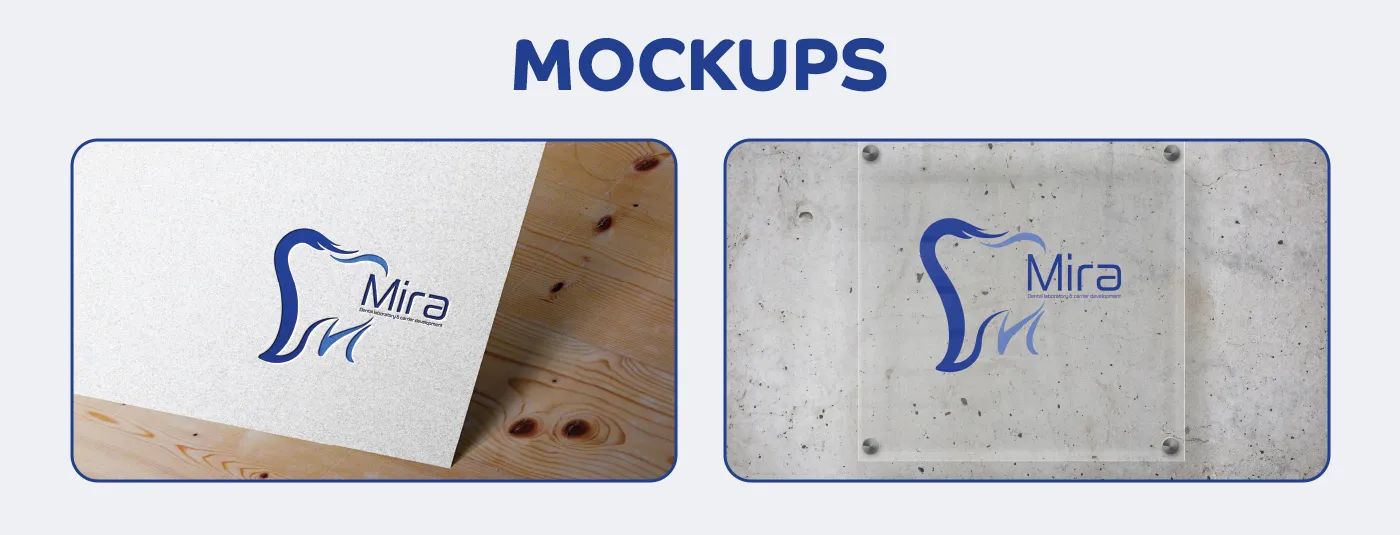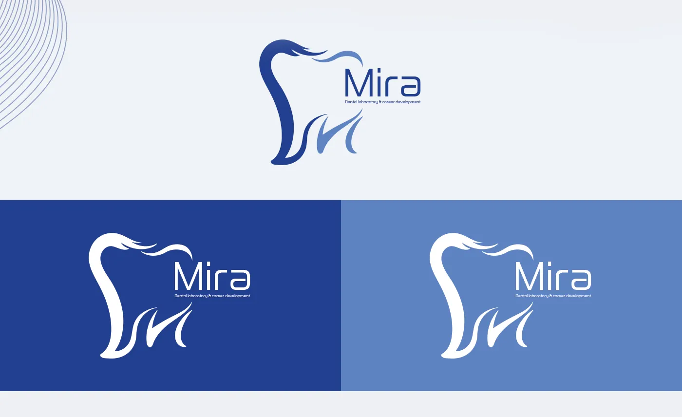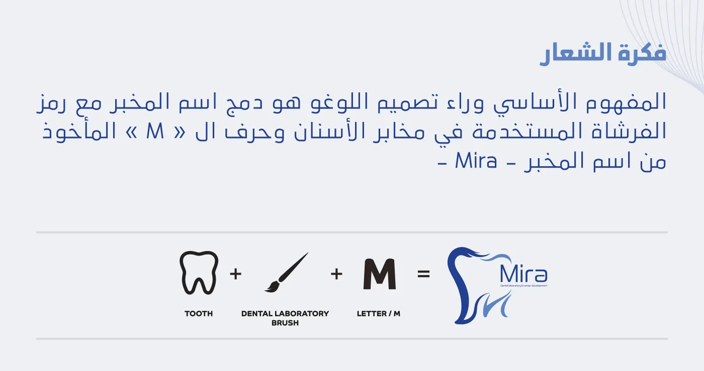 المفهوم: قمنا بابتكار شعار يدمج بذكاء بين أول حرف من الاسم "M"، فرشاة المخابر، والرمز الهندسي للسن، لنعكس التناغم بين الفن والتقنية في صناعة الأسنان.